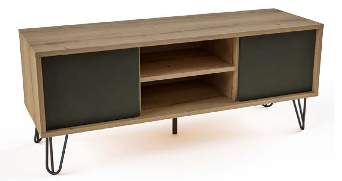 Έπιπλο τηλεόρασης 18mm, με μεταλλικά πόδια, ανοιγόμενες πόρτες με κρυφό μηχανισμό push και σταθερό ραφάκι. Διατίθεται σε 4 φυσικά χρώματα και δυνατότητα συνδυασμού με ανθρακί πορτάκια.