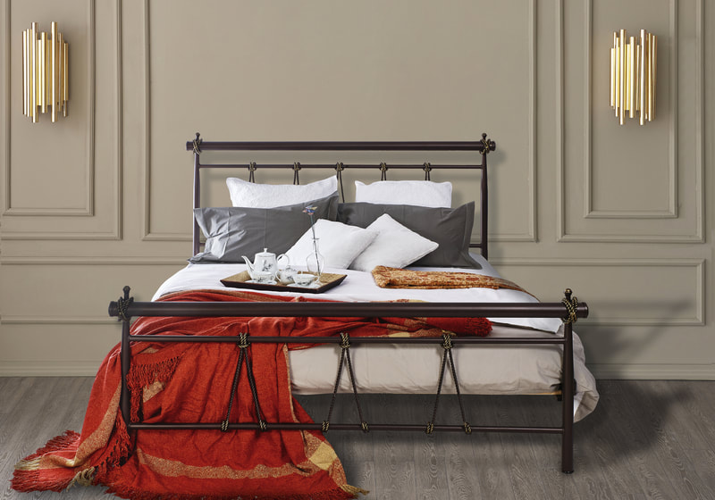 Μεταλλικό κρεβάτι με περίτεχνα σχέδια στις ενώσεις.