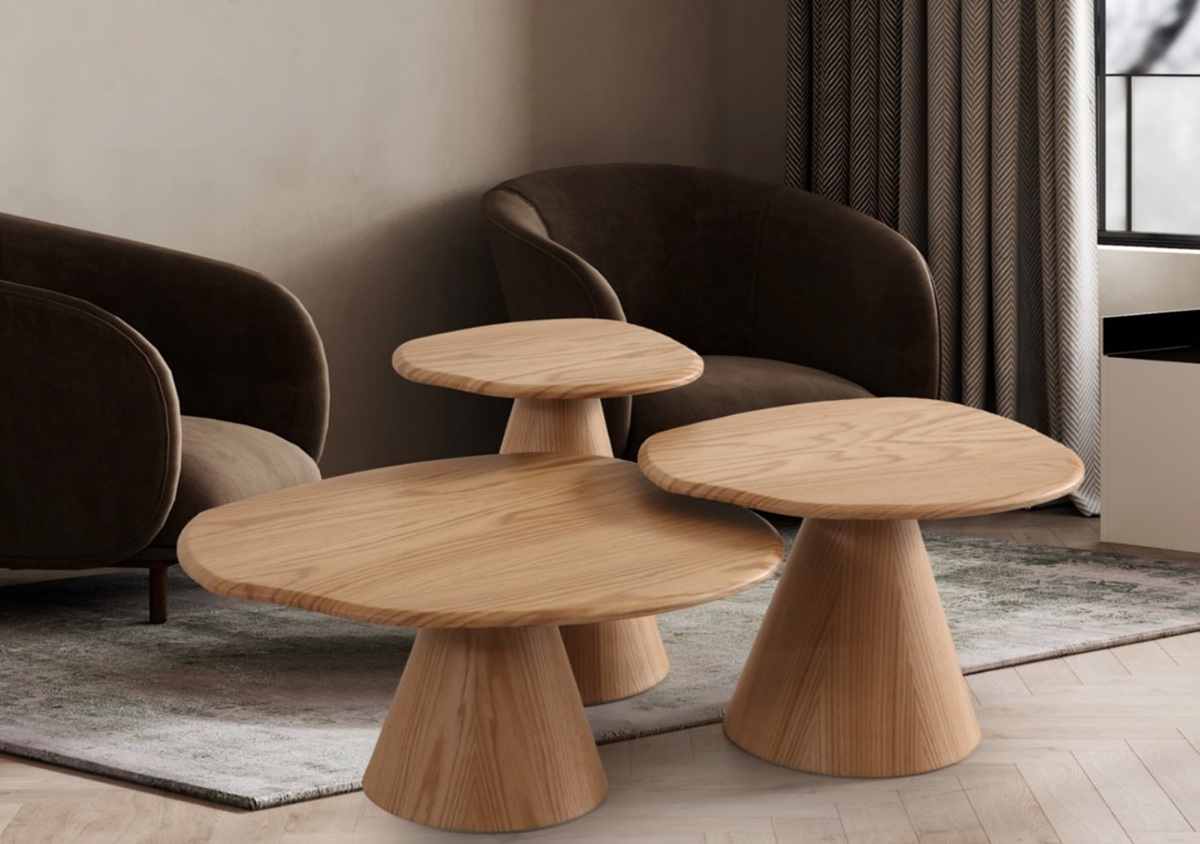 Σετ τραπεζιών σαλονιού με καπλαμά δρυός και δυνατότητα βαφής σε χρώμα της επιλογής σας.