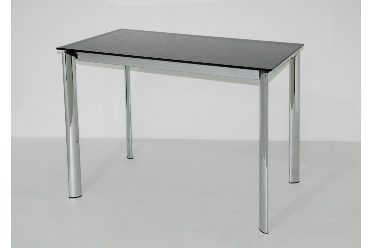 Τραπέζι σταθερό με σκελετό μεταλλικό και επιφάνεια με καφέ κρύσταλλο ασφαλείας.
