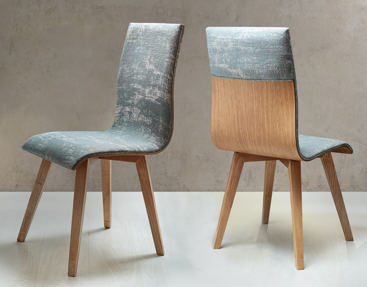 Fabric upholstered dining chair Adel with solid wooden frame.