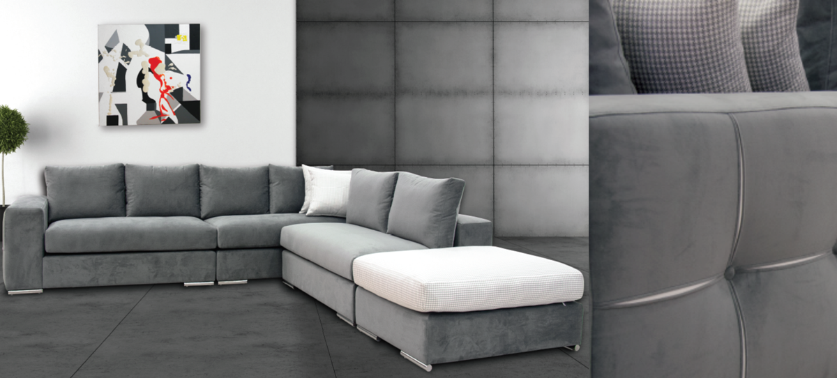 Sectional sofa in a streamlined design featuring neutral-toned upholstery. On this sofa the elegance meets comfort and high quality.